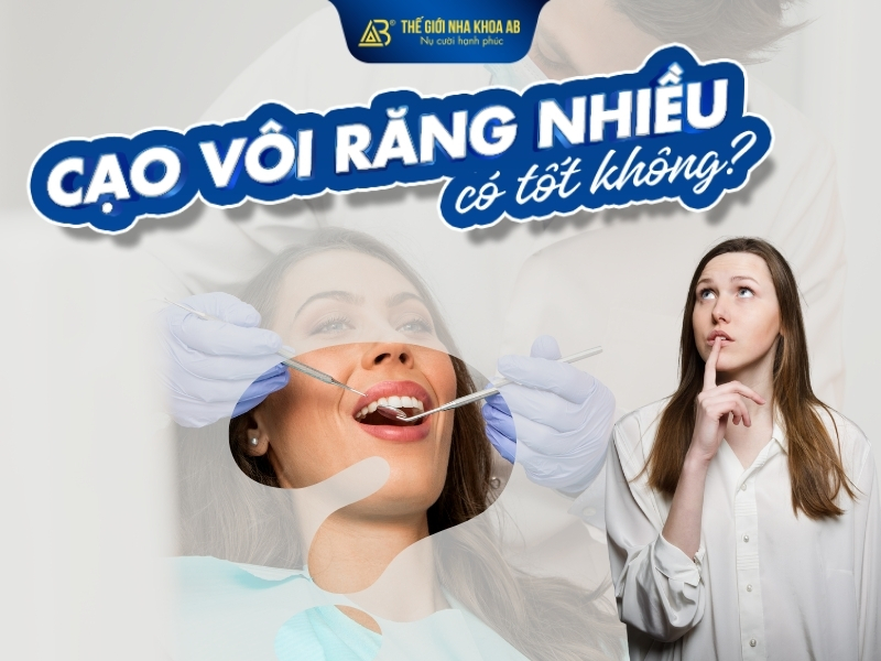 Cạo vôi răng nhiều không phải lúc nào cũng tốt. Câu hỏi “cạo vôi răng nhiều có tốt không?” luôn là mối bận tâm của nhiều người. Việc này cần được thực hiện theo tần suất hợp lý để bảo vệ men răng và sức khỏe răng miệng. việc này cần được thực hiện theo tần suất hợp lý để bảo vệ men răng và sức khỏe răng miệng. Thế Giới Nha Khoa AB khuyên bạn hãy đến các phòng khám nha khoa uy tín để được tư vấn chính xác. Hãy chăm sóc răng miệng đúng cách, duy trì chế độ kiểm tra định kỳ để đảm bảo một hàm răng luôn khỏe mạnh và tươi sáng!