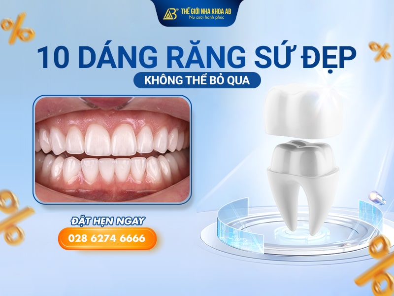 Trước khi quyết định bọc răng sứ thẩm mỹ, ngoài việc lựa chọn cơ sở nha khoa uy tín và chất liệu sứ chất lượng, việc tìm được kiểu dáng răng phù hợp với khuôn mặt cũng vô cùng quan trọng. Chọn đúng dáng răng không chỉ giúp nụ cười của bạn thêm tươi tắn mà còn tôn lên nét đẹp tự nhiên. Trong bài viết hôm nay, Thế Giới Nha Khoa AB sẽ gợi ý 10 mẫu dáng răng sứ đẹp và chuẩn xu hướng hiện nay để bạn tham khảo trước khi thực hiện.