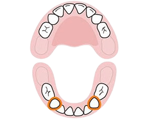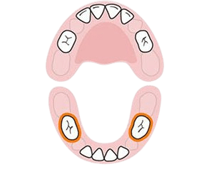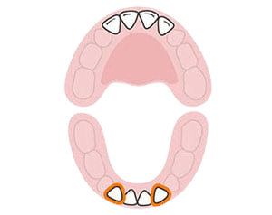 | Từ 14 – 18 tháng tuổi | Hai chiếc răng hàm dưới mọc lên, cách một răng so với những chiếc răng cửa. |
