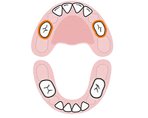 | Từ 16 đến 22 tháng tuổi | Khoảng trống giữa răng hàm và răng cửa trên được lấp đầy khi chiếc răng nanh bắt đầu mọc lên. |